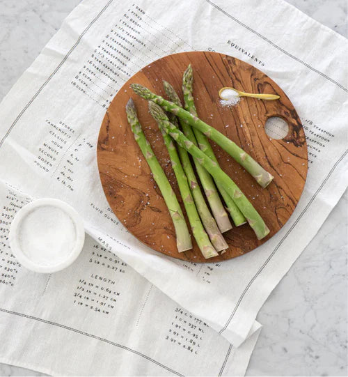 This tea towel is printed with handy cooking measurements and their equivalents, making it your kitchen’s quiet hero. Soft, durable, and thoughtfully designed, it keeps conversions close at hand while adding a clean, modern touch to your space. It's pretty, and practical!