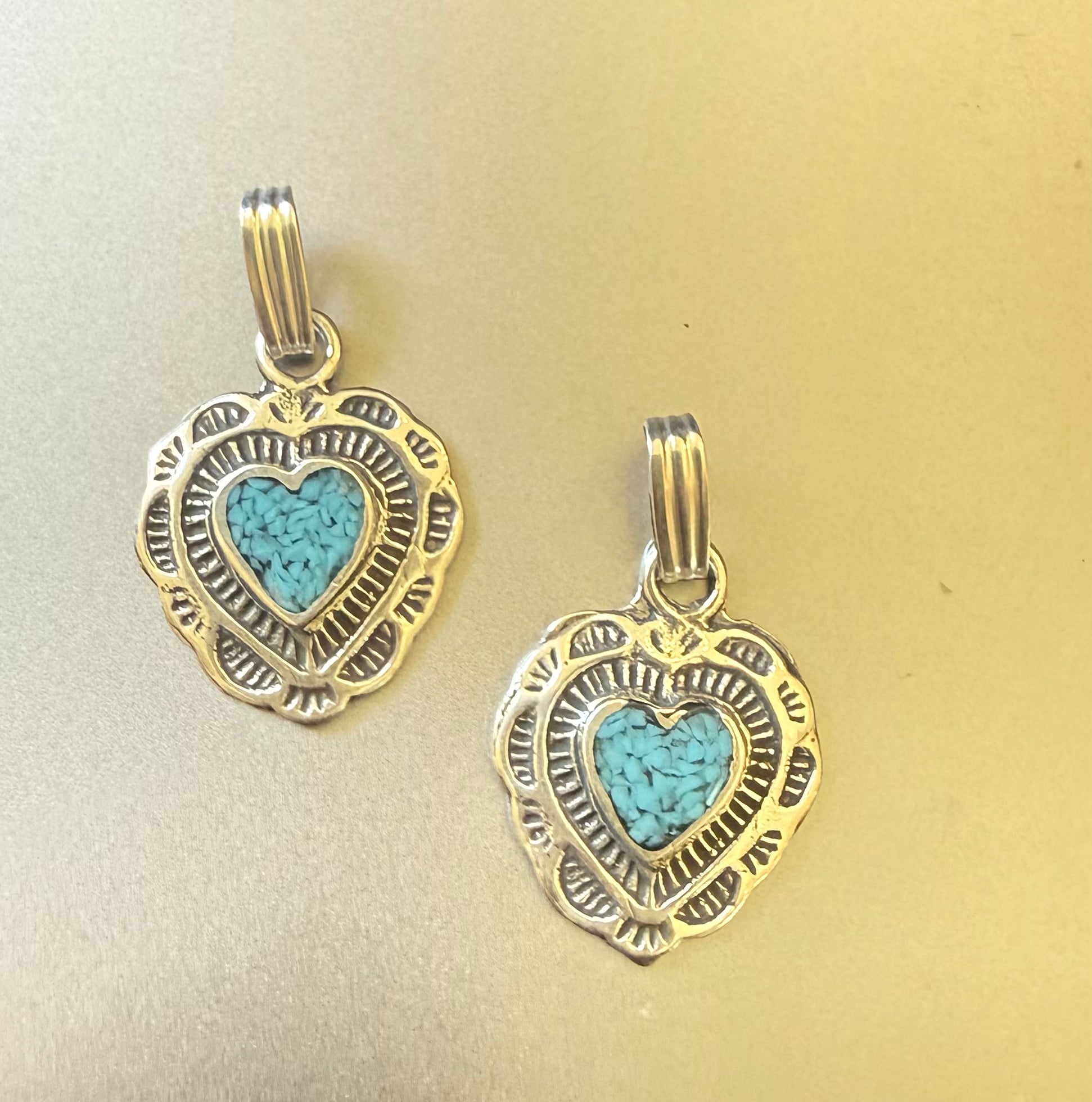 This Turquoise Heart Pendant features a set of tiny turquoise stones, arranged in the shape of a heart. Encased in ridged sterling silver, this pendant would make the perfect addition to your favorite necklace, or a wonderful gift to show someone how much you love them.