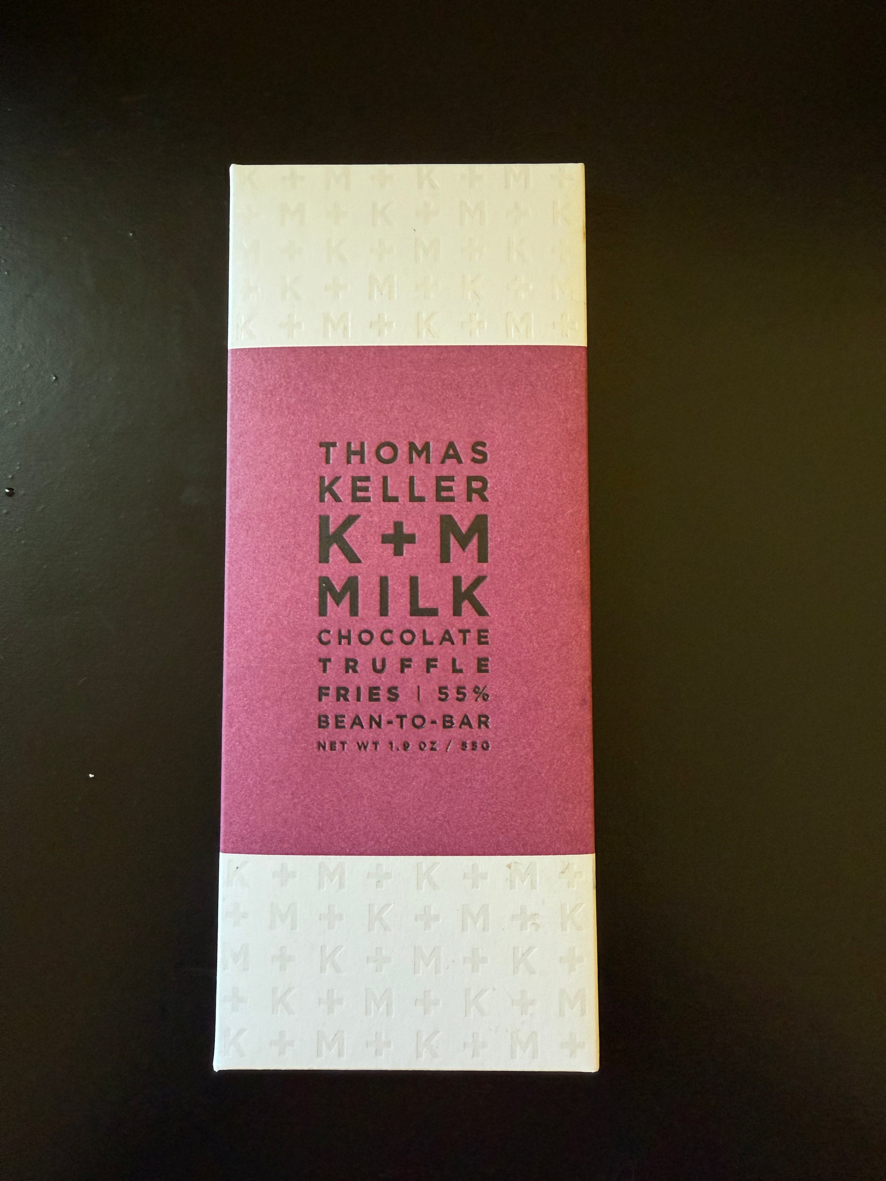 Inspired by the namesake side at Chef Thomas Keller's Bouchon Bistro, this chocolate bar combines lightly salted, crunchy French Fries and bean-to-bar milk chocolate with a hint of truffle. Crafted with Arriba Nacional cacao from Ecuador's Hacienda Victoria Estate and Rio Caribe beans from Venezuela's Paria Peninsula. Roasted, ground and molded by hand in Napa Valley, California. Packaged with recycled paper and compostable foil. Ingredients: cacao, organic cane sugar, RBST-free whole milk powder, organic cocoa butter, organic coconut powder, spices.