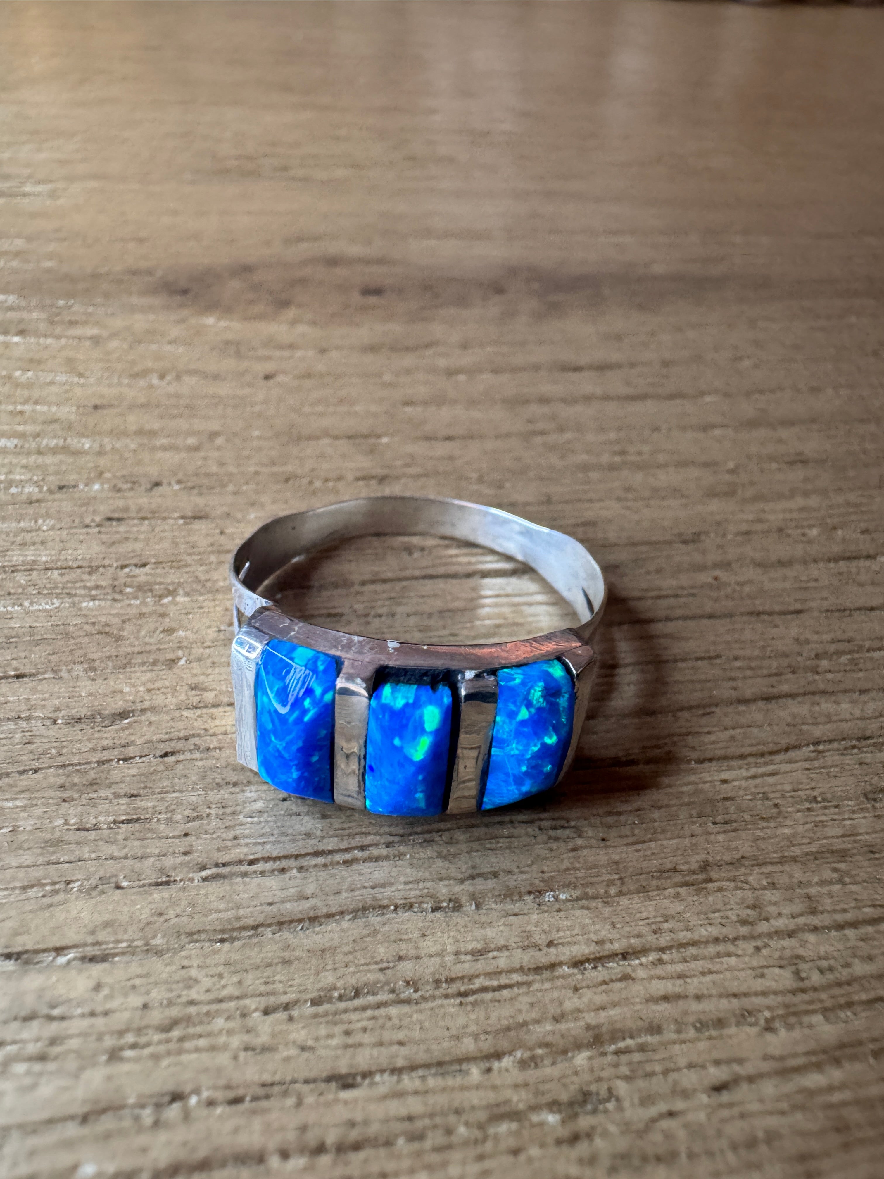 Expertly crafted sterling silver meets the mesmerizing deep blue opal inlays, reminiscent of a moonlit night. Handmade by Zuni artisans, Midnight Ridge captures the essence of the Southwest with its shimmering beauty and impeccable quality. A timeless piece that perfectly blends elegance and tradition.