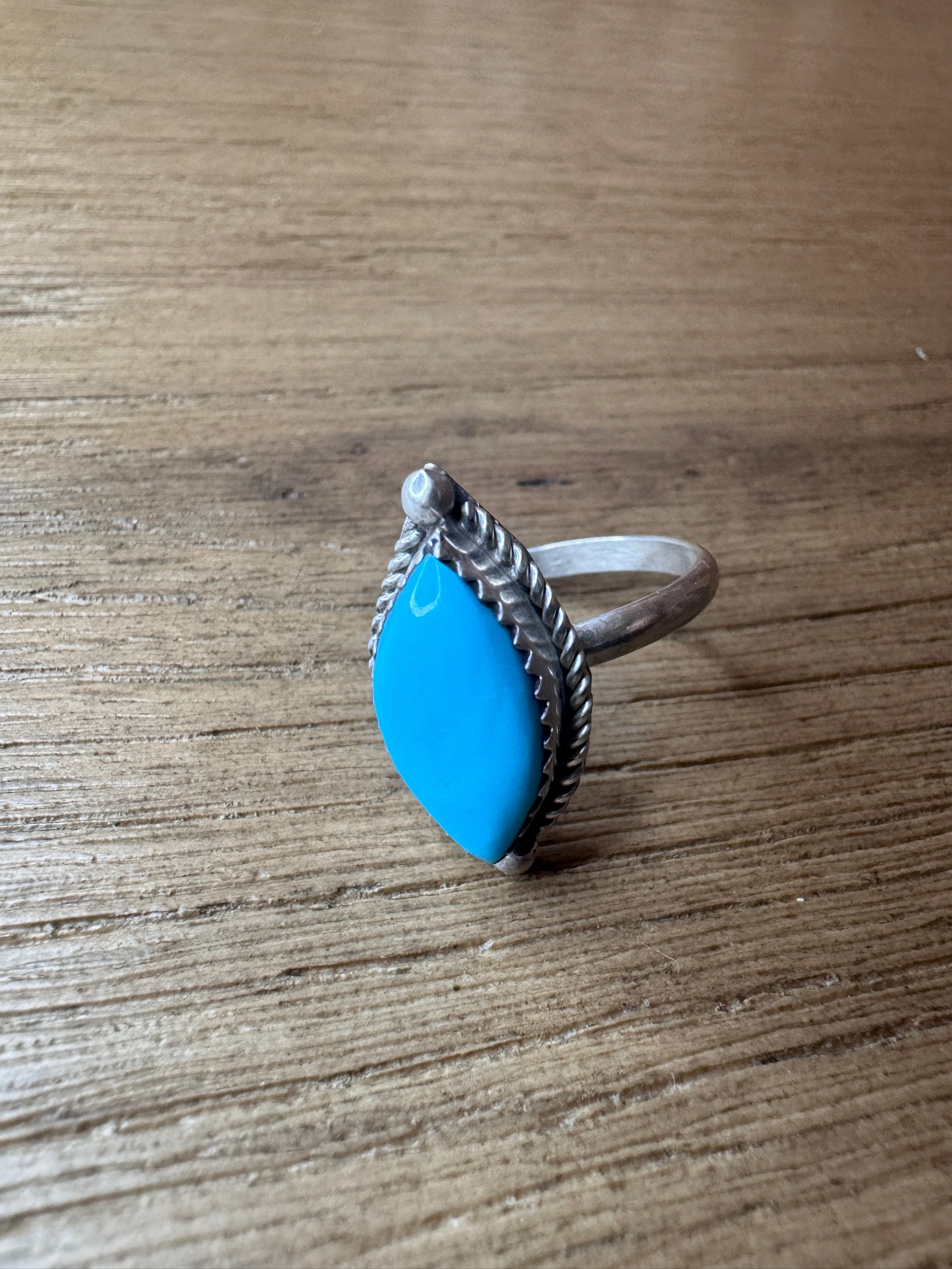 Crafted with stunning turquoise stone, this Size 7 Skypoint Ring is set in high-quality sterling silver. With intricate Zuni design, this ring is sure to make a statement. Elevate any outfit with this unique and expertly crafted piece.