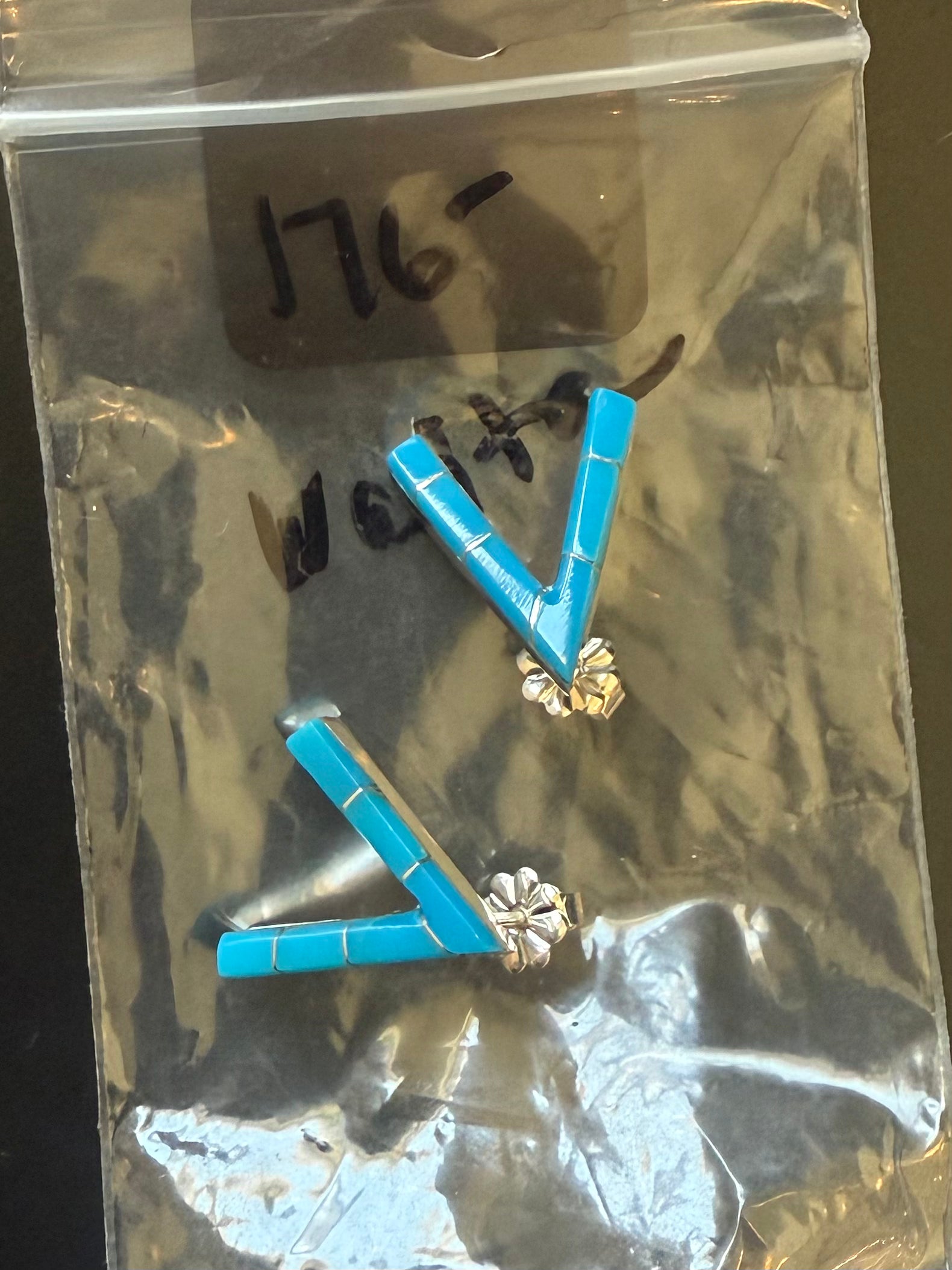 These v-shaped turquoise earrings strike the perfect balance between bold lines and natural charm. Set in sterling silver, their clean angles and vibrant stones create a look that's both striking and refined.