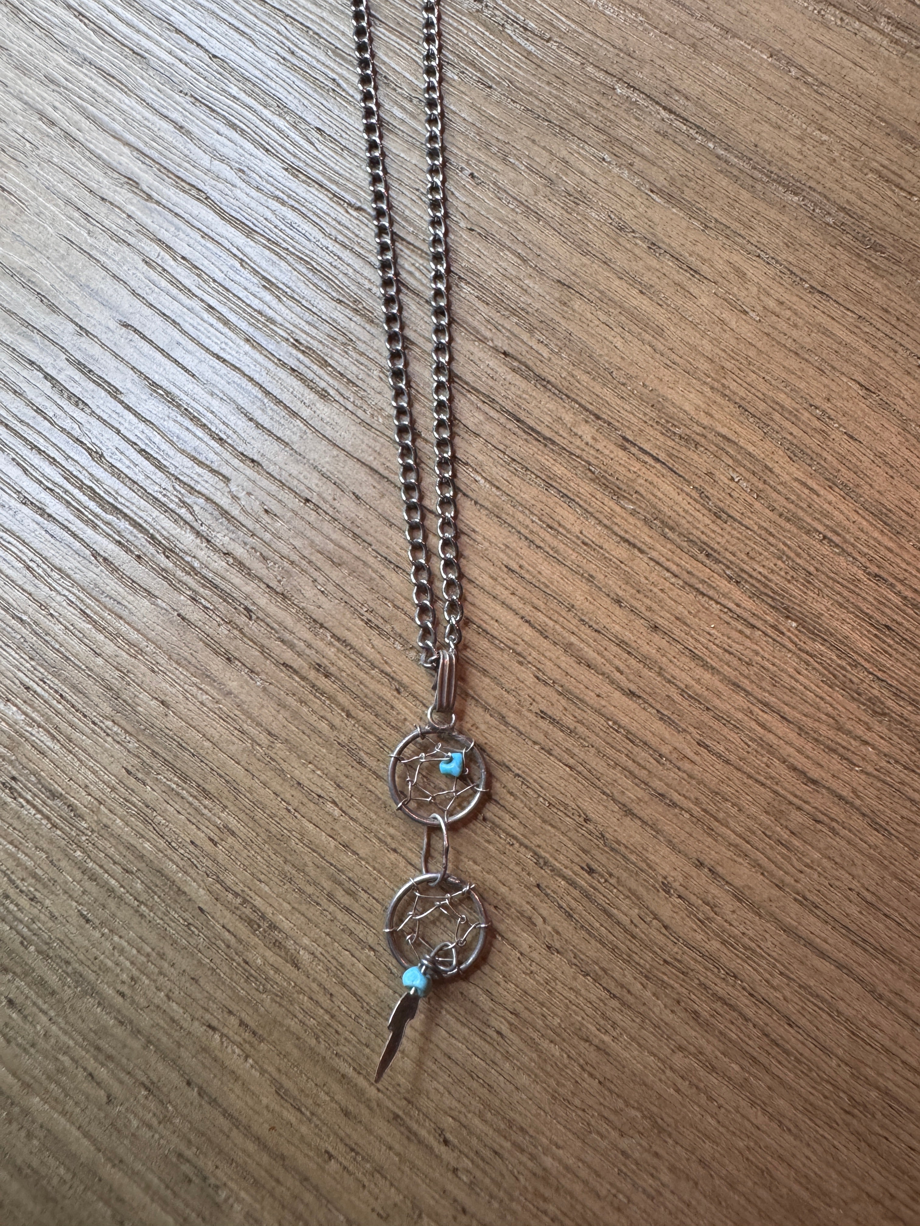 Expertly crafted with sterling silver and turquoise, this vintage-inspired Twin Silver Dreamcatcher is the perfect addition to any room. It not only adds a touch of elegance to your decor, but also offers the potential benefits of promoting positive dreams and warding off negative energy.