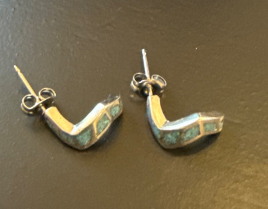 Zuni - Boomerang Turquoise Inlay Earrings